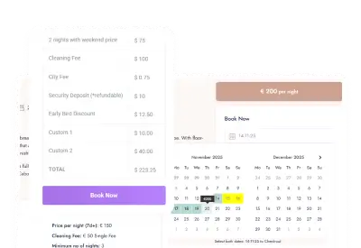 Permita que los huéspedes reserven más rápido con selección inteligente de fechas, reglas de precios flexibles y controles de disponibilidad instantáneos que se actualizan en tiempo real. Proporcione un flujo de reservas más fluido que reduzca la fricción y ayude a convertir a más visitantes en huéspedes confirmados.